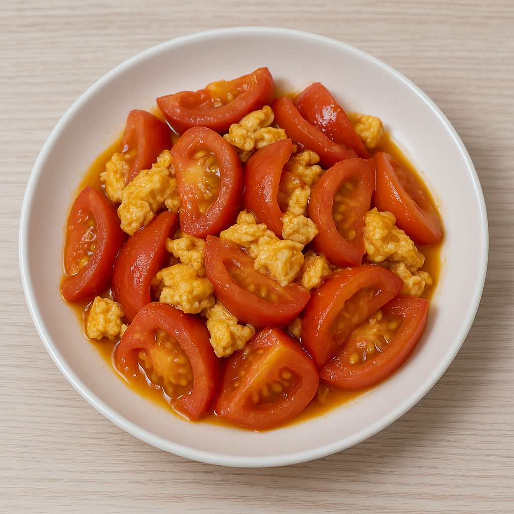 기름을 두른 팬에 스크램블한 달걀을 먼저 볶고, 썰어둔 토마토를 넣어 약간의 설탕과 소금으로 간을 맞춰 볶아줍니다.