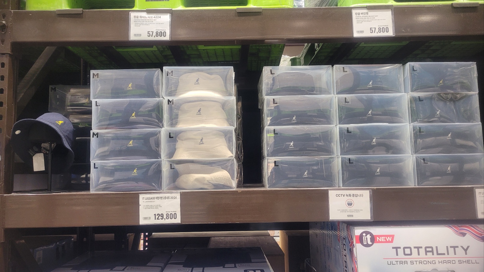 ✔️ 의류 코너에서는 캉골 버킷햇이 깔끔하게 진열되어 있었고, 가격은 57,800원.