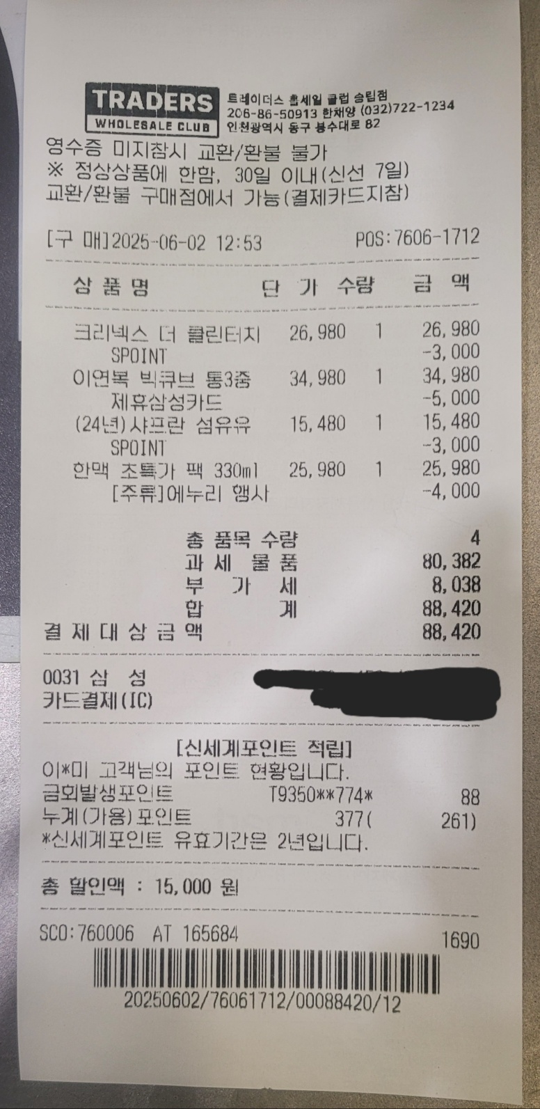 👉 총 15,000원 할인받아 88,420원 결제!
