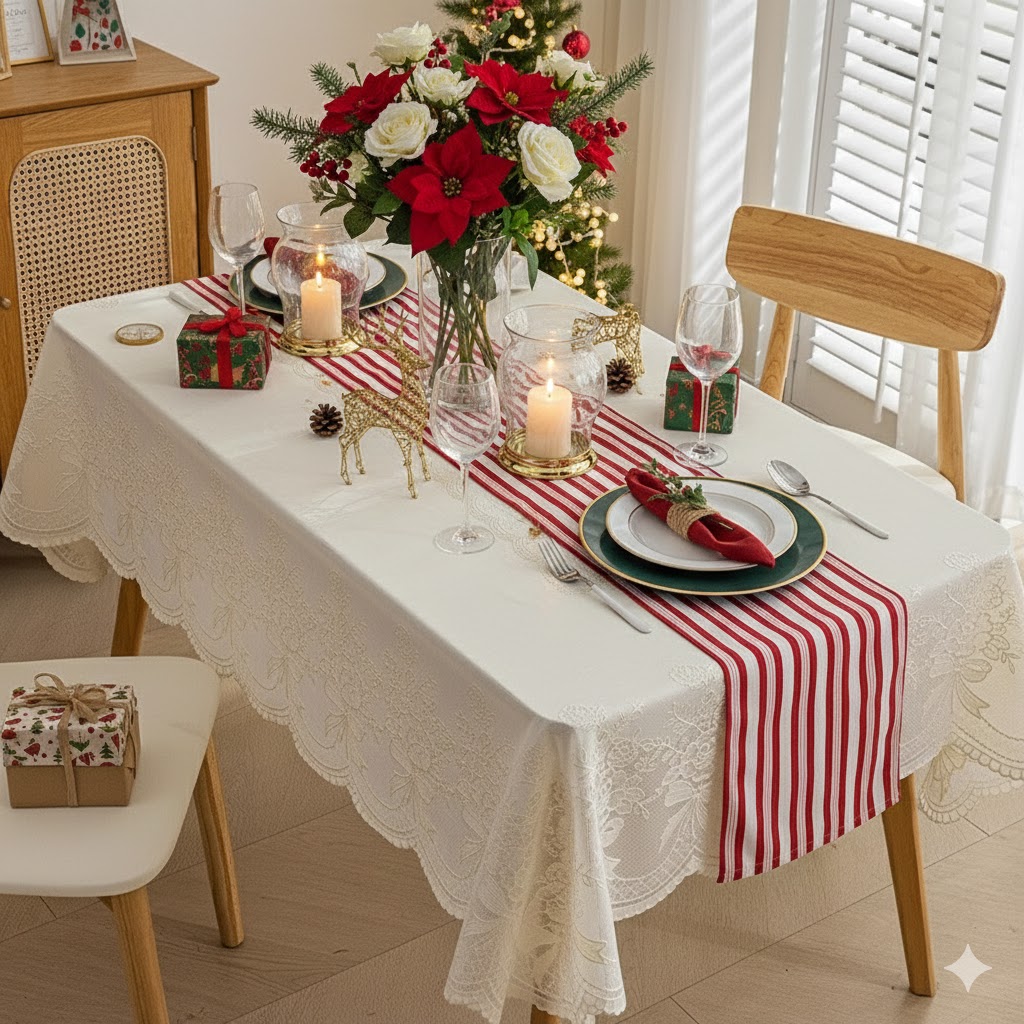 🎄 1. 크리스마스 테이블 분위기를 살리는 첫 번째 포인트, 바로 ‘식탁보’