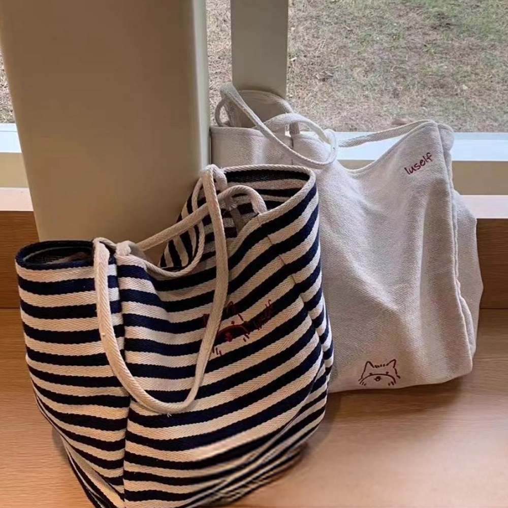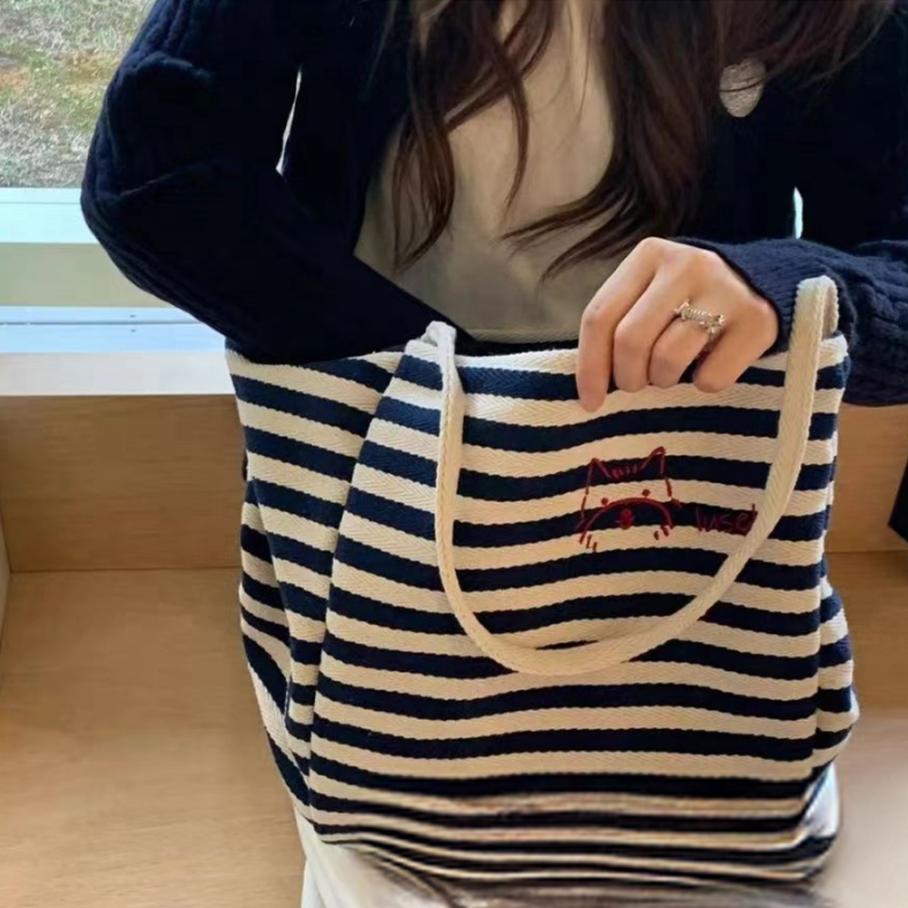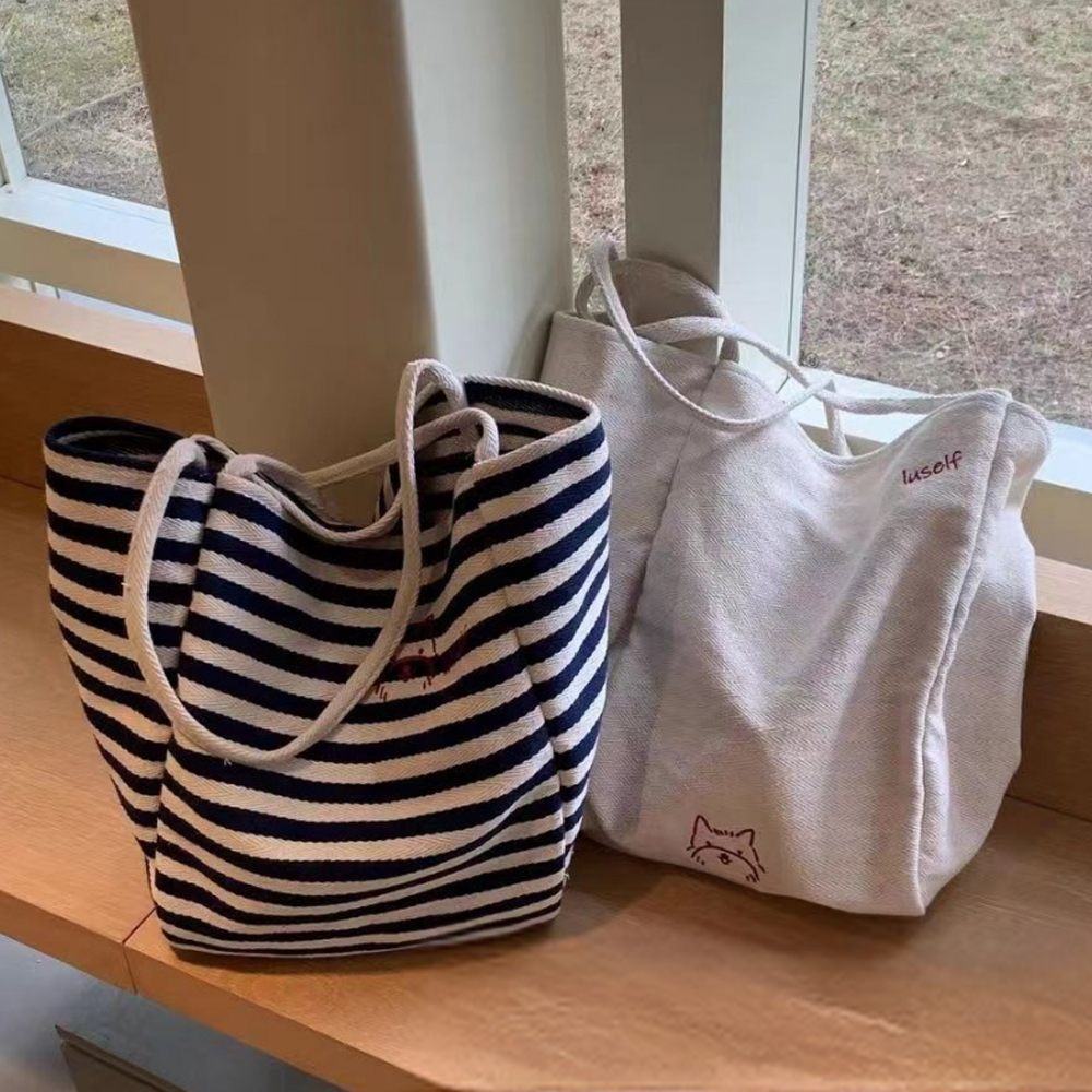 1. 스트라이프 캔버스 에코백 – 데일리로 가장 손이 가는 가방