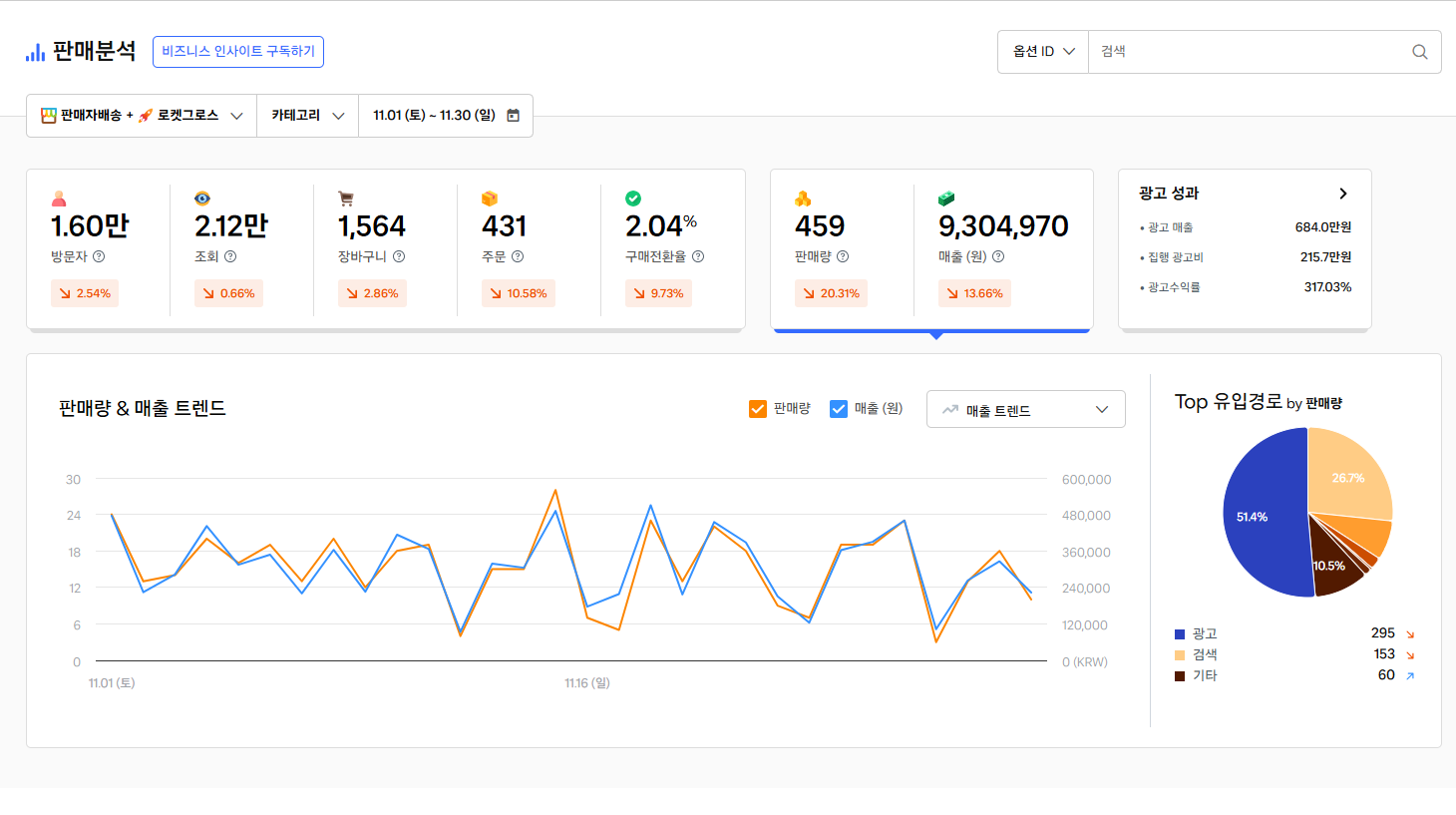 - 광고비를 조절하며 운영하는 셀러